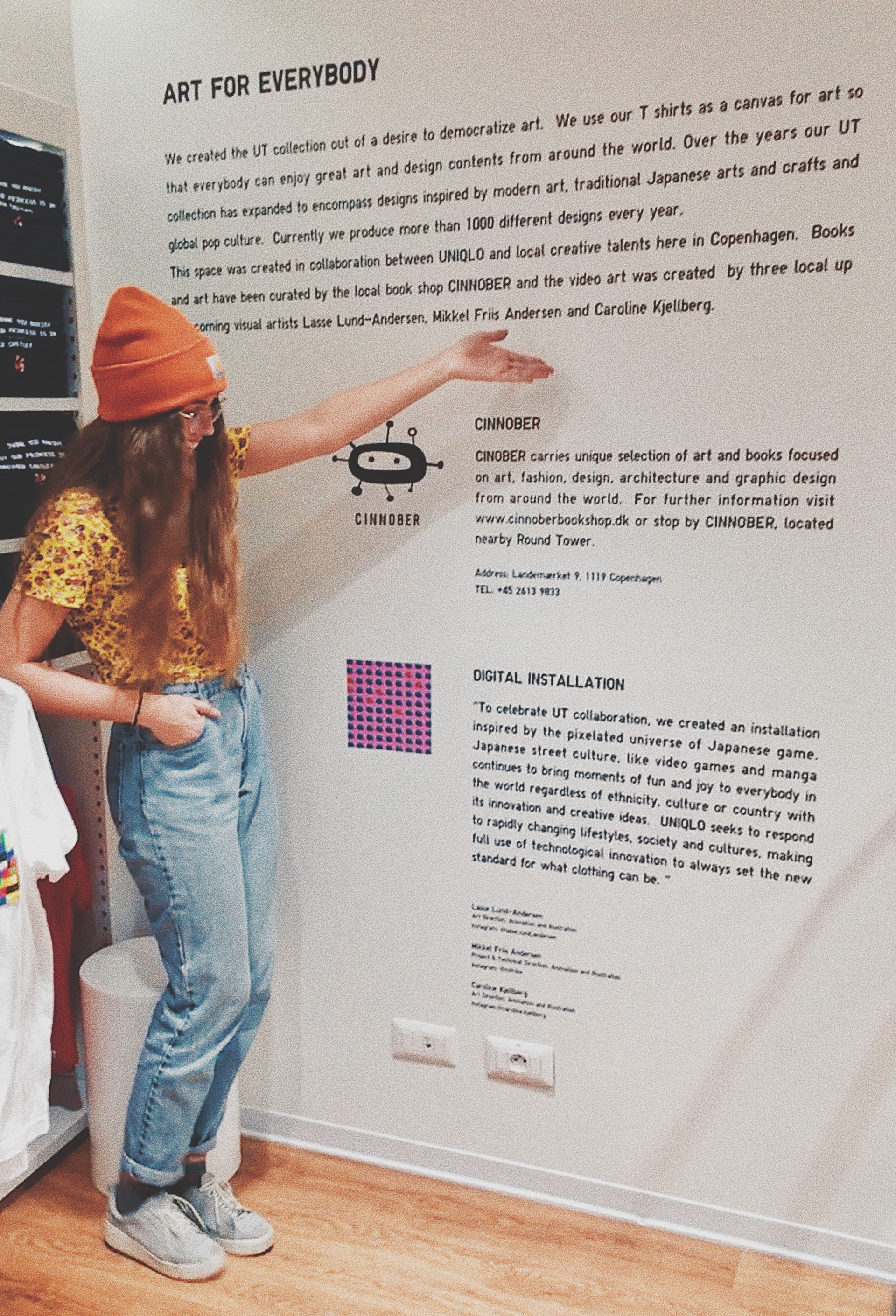 In April 2019 the first UNIQLO store opened in Copenhagen, and for the opening they invited different Danish artists to collaborate with them in store. Lasse Lund-Andersen, Mikkel Friis and I were chosen to create an animation meant to be projected on a big wall in one of their show rooms to decorate the room and give the customers a more colourful and expressive experience while shopping. The theme was focused on Nintendo and UNIQLO and their collaboration and a celebration of this, so to salute the grand history of Nintendo from 150 years ago until today, we created a storyline following a red travelling pixel inspired by the pixelated universe of Nintendo, which also happened to have the same shape as the UNIQLO logo. The storyline was divided into three chapters; Pixels, Isometry and 3D - all using the color palette chosen by UNIQLO.